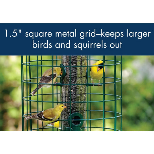 6-port Caged Squirrel Resistant Metal Cage Tube Bird Feeder, Green